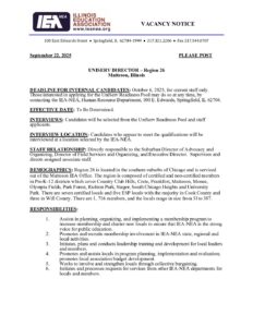 Equal Employment – The Illinois Education Association-NEA does not discriminate in hiring or employment on the basis of race, color, religion, national origin, sex, pregnancy, age, ancestry, disability, marital status, sexual orientation, veteran status, or other status protected by applicable federal, state or local law.