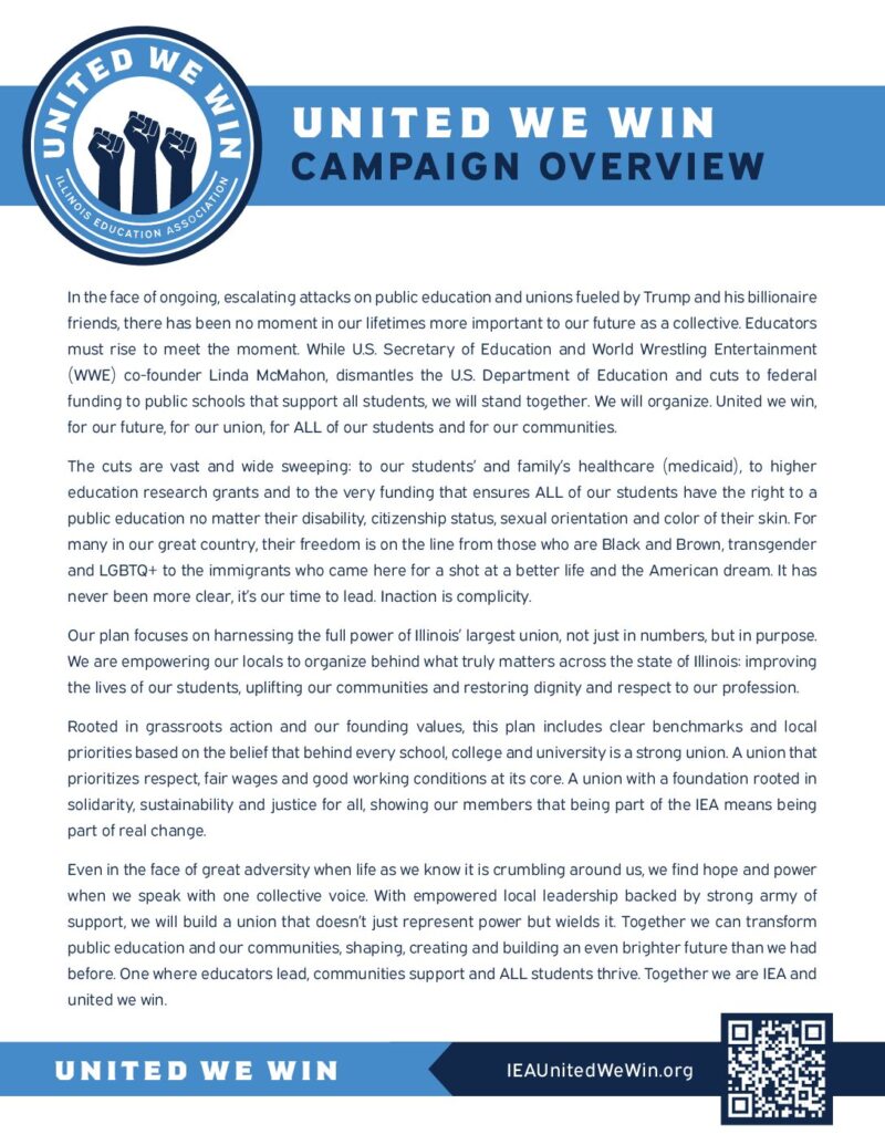 Our plan focuses on harnessing the full power of Illinois’ largest union, not just in numbers, but in purpose. We are empowering our locals to organize behind what truly matters across the state of Illinois: improving the lives of our students, uplifting our communities and restoring dignity and respect to our profession.