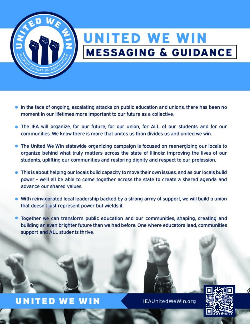 Even in the face of great adversity when life as we know it is crumbling around us, we find hope and power when we speak with one collective voice. With empowered local leadership backed by strong army of support, we will build a union that doesn’t just represent power but wields it. Together we can transform public education and our communities, shaping, creating and building an even brighter future than we had before. One where educators lead, communities support and ALL students thrive. Together we are IEA and united we win.